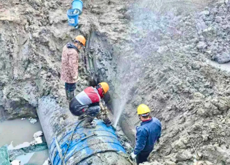 搶修現(xiàn)場,受損供水管與鄰近排水管間距較近,作業(yè)空間狹窄,大型機(jī)械無法進(jìn)場。為此,搶修人員分步攻堅(jiān),不顧嚴(yán)寒,趴在冰冷泥水里挖土堵點(diǎn),安裝抱箍,雖然泥水浸透衣褲,寒氣鉆透指尖,仍一步步完成堅(jiān)固密封等工序。至1月2日上午9時(shí),經(jīng)過連續(xù)近13小時(shí)奮戰(zhàn),供水主干管永久性密封修復(fù)完成,齊賢街道陶里片區(qū)約6000戶居民恢復(fù)正常供水。
