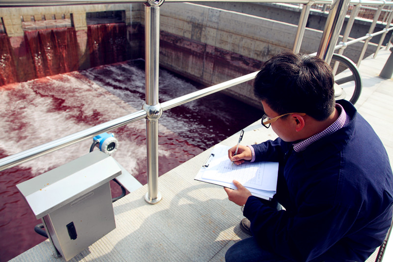 江濱水處理公司運(yùn)行部工作人員抄進(jìn)水流量