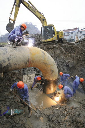 為緩解小舜江供水一期管線日益增加的運行壓力,公司利用冬季供水低谷期,于126日成功實施了對小舜江二期供水總管與柯橋泵站1#出廠管連通管兜口作業。