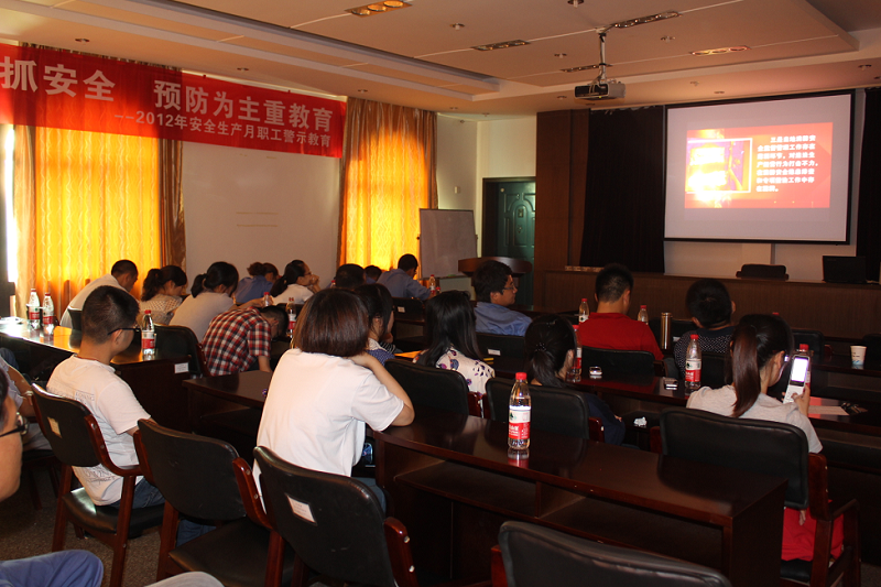 (圖為職工觀看警示片)