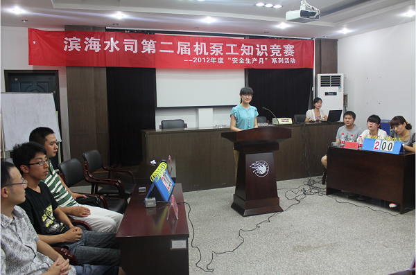 7月20日上午,濱海水司第二屆高配機(jī)泵工知識(shí)競(jìng)賽在三樓會(huì)議室落下帷幕,經(jīng)過(guò)激烈的角逐,迎陽(yáng)閘取水泵房代表隊(duì)獲得優(yōu)勝獎(jiǎng),送水泵房代表隊(duì)及新三江取水泵房代表隊(duì)獲得鼓勵(lì)獎(jiǎng)。