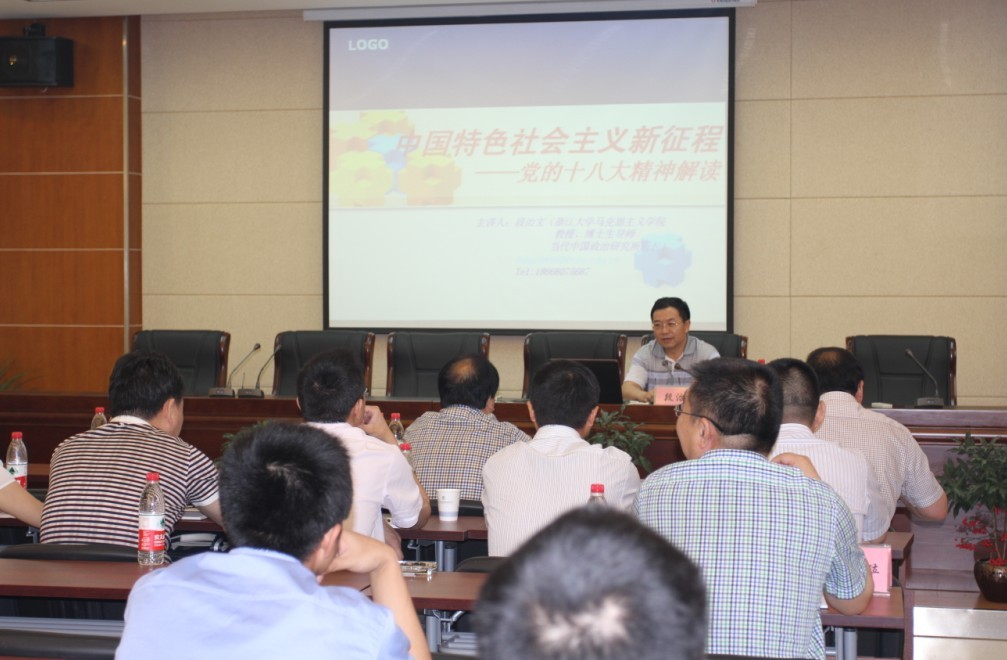 培訓中,段教授從堅定中國特色社會主義的信念、堅持科學發展觀的科學指導、堅持科學的改革開放觀等六個方面對十八大精神進行解讀。深邃的政治理論用深入淺出的語言、具體詳實的事例生動表述,使全體參加講座的人員受到了一次思想的洗禮。這對于進一步學習貫徹落實十八大精神發揮了積極的推動作用。