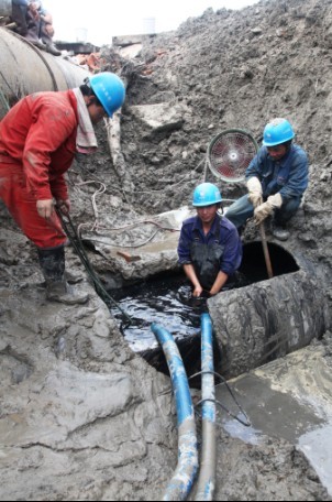 為讓道“清水工程”翻水站建設(shè),公司對錢二—柯海1號DN1200管進行改道遷建。 該污水管道是全縣三大排污管線之一,承接了錢清、楊汛橋、夏履、湖塘、柯巖的工業(yè)污水和生活污水排放。經(jīng)過前期充分準(zhǔn)備,整項遷建工程從5月25日開始,至6月18日進行兜口,通過搶修人員的持續(xù)作戰(zhàn),兜口工作提前完成,遷建工程比計劃提前15個小時完工。