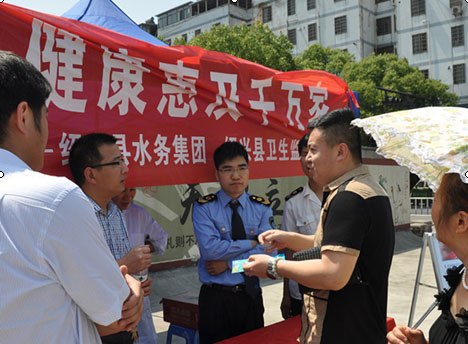 5月14日上午,縣水務(wù)集團(tuán)與縣衛(wèi)生監(jiān)督所聯(lián)合在柯橋城區(qū)開展飲用水衛(wèi)生宣傳活動(dòng),發(fā)放飲用水知識(shí)宣傳頁,并上門為用戶開展免費(fèi)水質(zhì)檢測服務(wù)。