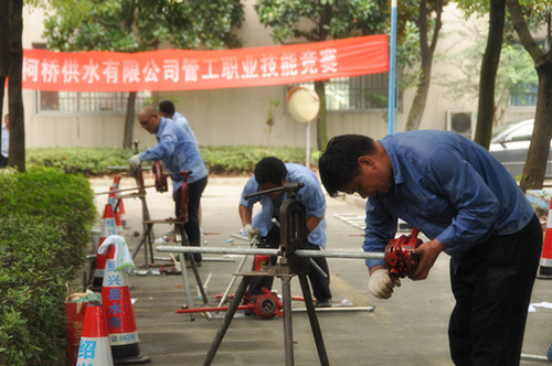 比賽分理論考試和實踐操作兩部分。理論考試涉及制圖、水力學(xué)、管材、管網(wǎng)管理、施工、安全等知識,實踐操作包括施工圖紙識讀、施工方案的編制、管道工程量的計算和管道的安裝等。此次職業(yè)技能競賽,全面檢驗了職工的崗位技能綜合素質(zhì),促進(jìn)了供水搶修技能的提升。
