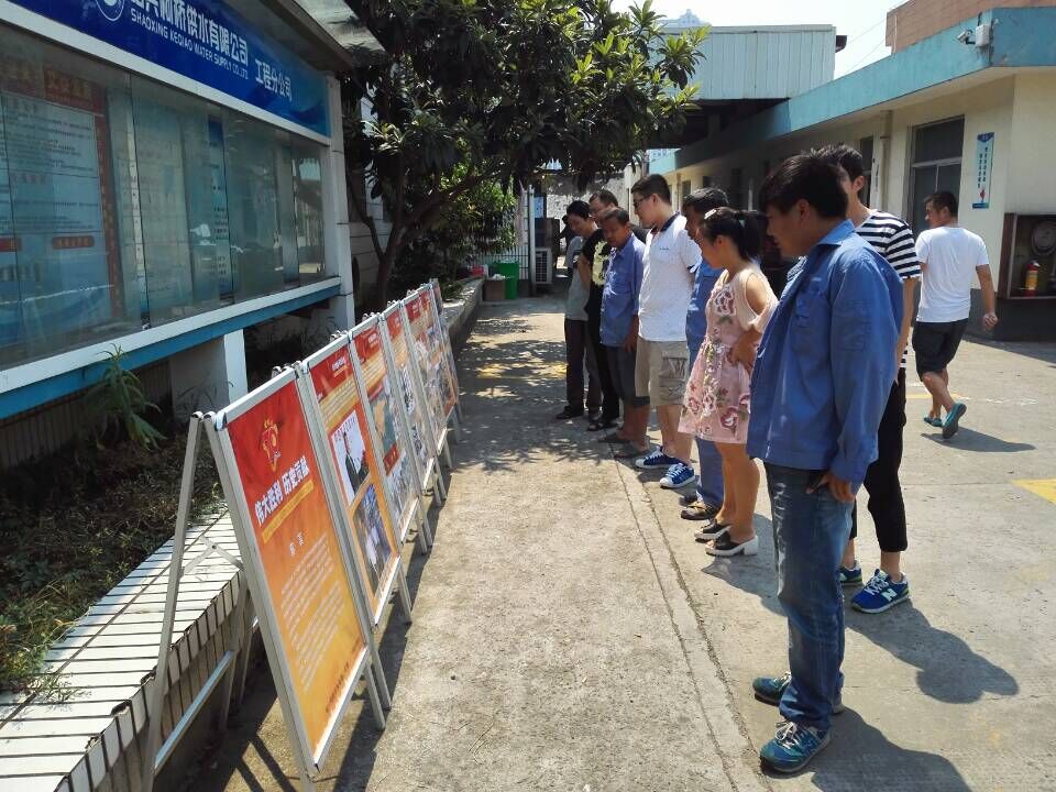 在“93日中國人民抗日戰爭勝利紀念日”到來之際,供水公司通過多種形式開展宣傳和紀念活動。一是制作《偉大勝利、歷史貢獻》抗日戰爭勝利宣傳展板,分別以全民族抗戰、中流砥柱、東方主戰場、侵華日軍暴行、偉大勝利、珍愛和平等主題反映中華民族抗日戰爭,并在公司下屬7個支部之間進行巡展,讓廣大干部職工銘記中國抗日戰爭的歷史;二是以部門為單位,組織學習《中國抗日戰爭70問》和《抗戰記憶》,讓廣大干部職工深刻理解抗日戰爭的偉大意義;三是利用中午午休時間,以支部為單位,組織廣大黨員干部觀看抗日戰爭影片《南京,南京》。通過主題宣傳,弘揚偉大抗戰精神,讓廣大職工銘記歷史、珍愛和平。