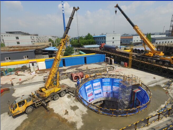 紹興城市北部區域供水保障工程是紹興市三區融合的重點建設項目,共分袍江段、濱海工業區段、濱海新城江濱區段三部分,其中,公司主要負責濱海工業區段,涉及建設DN1200-1600供水管線9公里,投資概算約8100萬元頂管施工則是整個工程中最重要部分,該頂管直徑1.6米,總長1.6公里,此類規模的小口徑大長度過江頂管在全國尚屬首例,難度極大,對工程的設計、施工技術、管材質量都有著極高要求。在建設過程中,施工人員要通過打30米深的工作井,采用“頂進法”施工,將頂管下穿曹娥江。