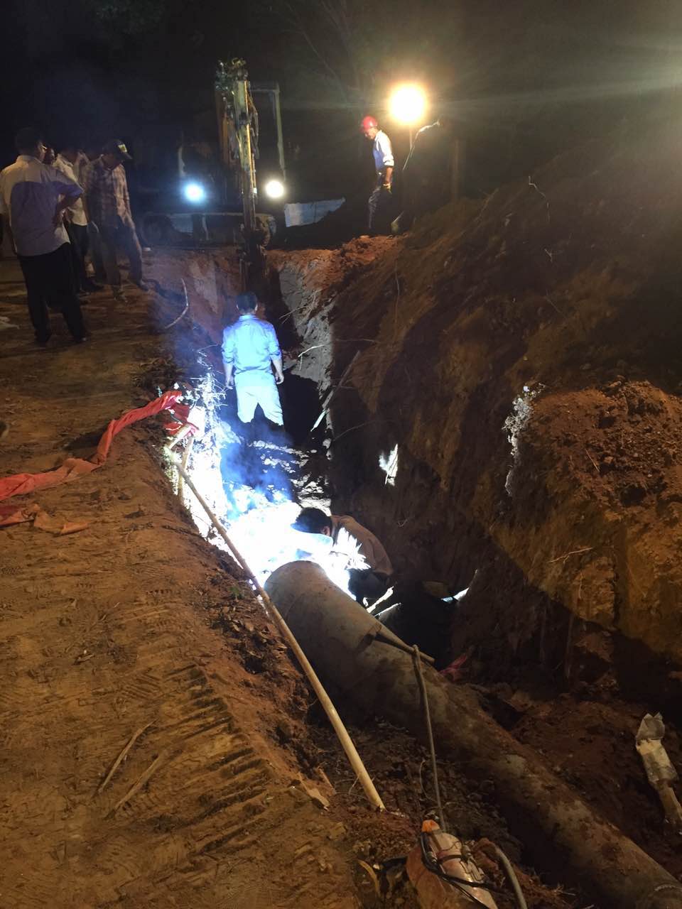 為進(jìn)一步提高平水鎮(zhèn)水量水壓,8月11日晚,柯東分公司組織施工人員對口徑為DN500管的平水二期總管實(shí)施了兜口工程。