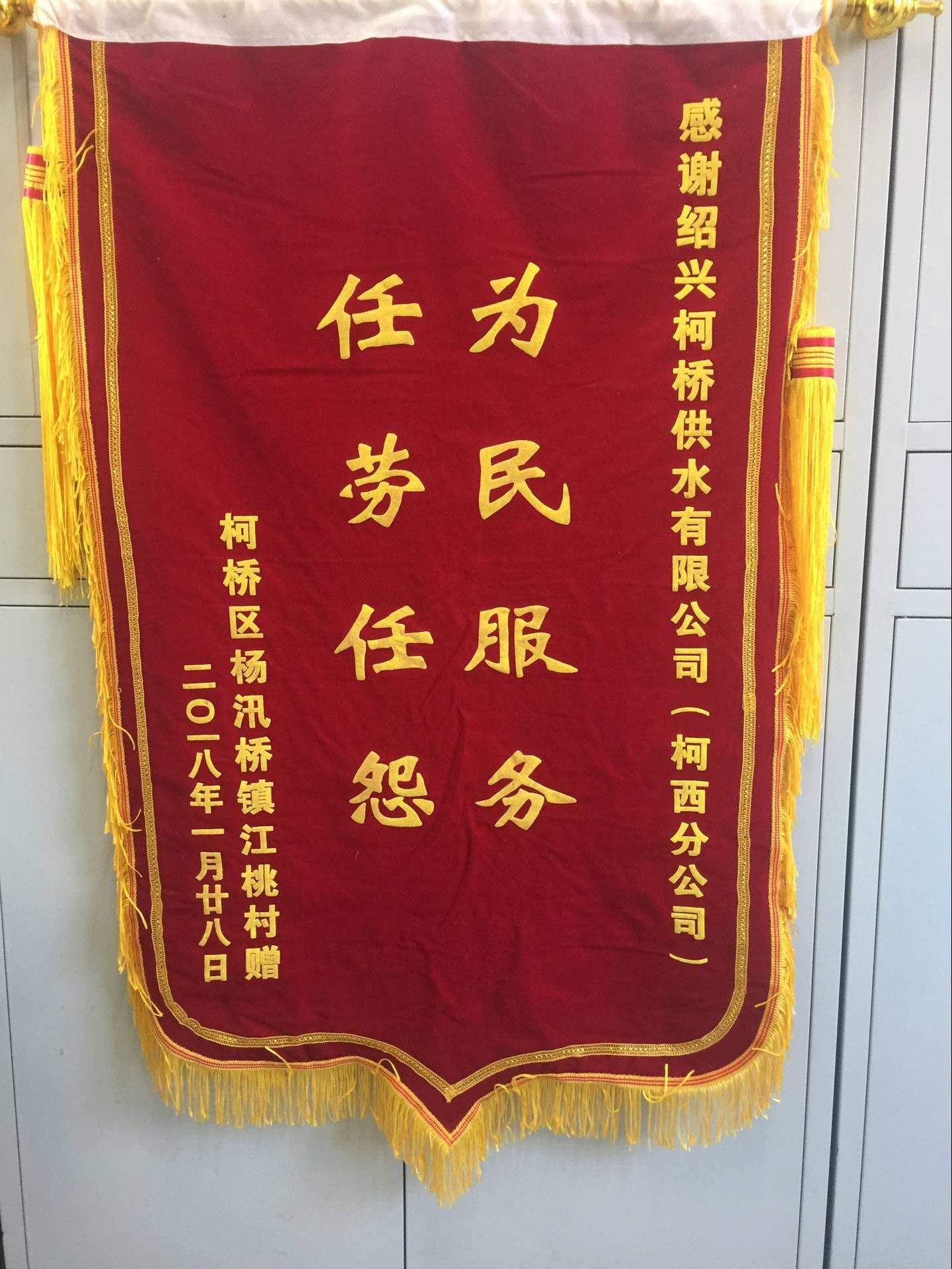 1月29日,楊汛橋鎮(zhèn)江桃村村委專程送來錦旗,感謝柯西分公司提供的優(yōu)質(zhì)服務(wù)。