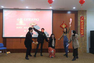 舞臺上,迎春聯歡會節目形式多樣、亮點紛呈,由各部門精心選送的小品、歌曲演唱、三句半和樂器演奏等形式各異的節目精彩上演。江濱人脫下工裝,盡顯才藝,通過各桌打分,綜合部選送的小品《才藝PK》獲得最佳節目獎。最后公司總經理徐冬上臺致辭,向全體干部員工及家屬致以新春祝福,向奮斗在一線崗位的員工表達敬意,迎新聯歡會圓滿落幕。