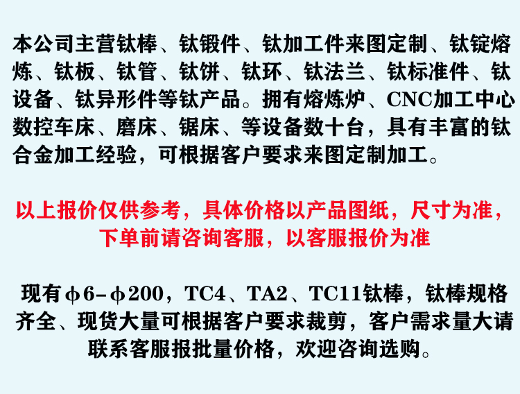 寶雞盛輝鈦業有限公司是一家主要從事鈦及鈦合金棒,鈦環,鈦法蘭及鈦合金板材的高新技術企業,公司提供鈦環,鈦合金棒批發,鈦環的生產工藝服務,以人為本,質量取勝為宗旨:18791863990,18740375975