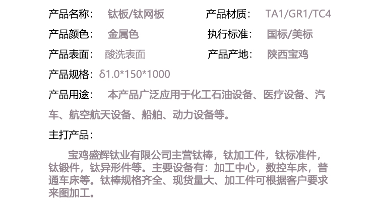 寶雞盛輝鈦業有限公司是一家主要從事鈦及鈦合金棒,鈦環,鈦法蘭及鈦合金板材的高新技術企業,公司提供鈦環,鈦合金棒批發,鈦環的生產工藝服務,以人為本,質量取勝為宗旨:18791863990,18740375975
