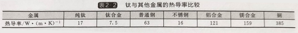 鈦的熱導率小,僅為鋼的 1/5,鋁的 1/13,銅的 1/25。導熱性不好是鈦的一個缺點,但在某些場合下可以利用鈦的這一特征。