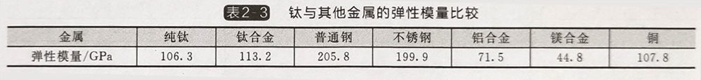 鈦與其他金屬的彈性模量比較見表 2-3。