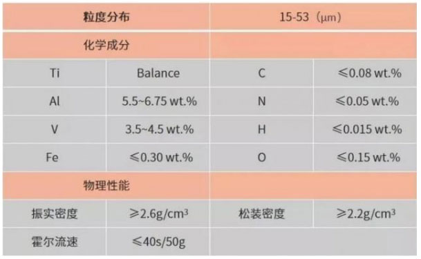 TC4是航空航天、醫(yī)療領(lǐng)域中廣泛使用的一種鈦合金材料。鉑力特TC4粉末通過選區(qū)激光熔化(SLM)增材制造設(shè)備成形后,所得零部件的微觀組織均勻致密、具有快速凝固的特征。打印件抗拉強(qiáng)度、屈服強(qiáng)度、延伸率分別高于鍛件指標(biāo)約6~7%、6~10%、55-60%。其中,15~53μm TC4粉末的技術(shù)指標(biāo)如下表。