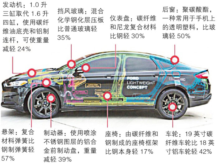 福特新輕型汽車通過使用多種輕量化材料,使自重減少近25%