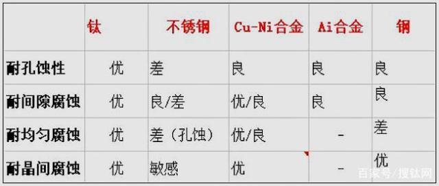 表:幾種金屬在海水中耐腐蝕性能比較