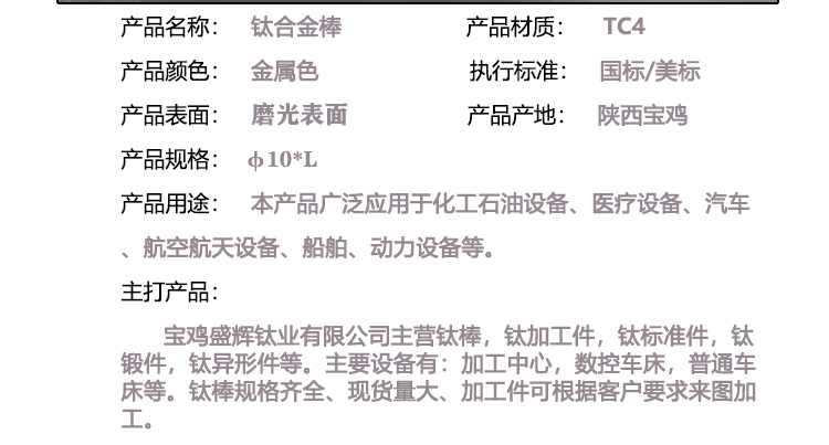 寶雞盛輝鈦業有限公司主營鈦棒,鈦加工件,鈦標準件,鈦鍛件,鈦異