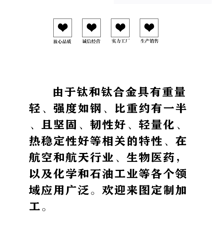 寶雞盛輝鈦業(yè)有限公司是一家主要從事鈦及鈦合金棒,鈦環(huán),鈦法蘭及鈦合金板材的高新技術(shù)企業(yè),公司提供鈦環(huán),鈦合金棒批發(fā),鈦環(huán)的生產(chǎn)工藝服務(wù),以人為本,質(zhì)量取勝為宗旨:18791863990,18740375975