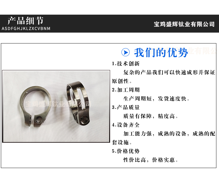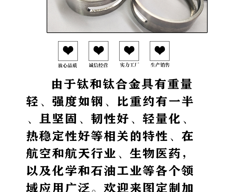 寶雞盛輝鈦業(yè)有限公司是一家主要從事鈦及鈦合金棒,鈦環(huán),鈦法蘭及鈦合金板材的高新技術(shù)企業(yè),公司提供鈦環(huán),鈦合金棒批發(fā),鈦環(huán)的生產(chǎn)工藝服務(wù),以人為本,質(zhì)量取勝為宗旨:18791863990,18740375975