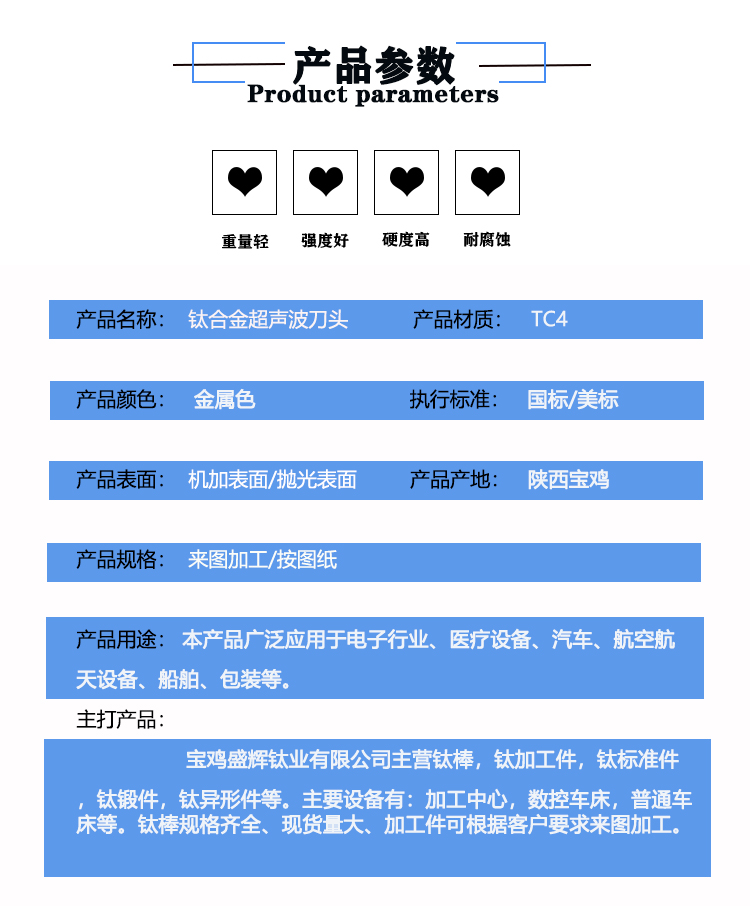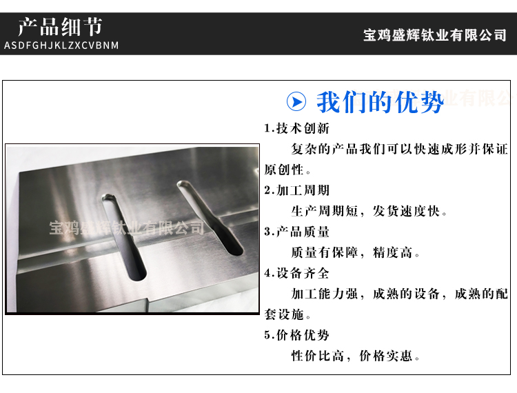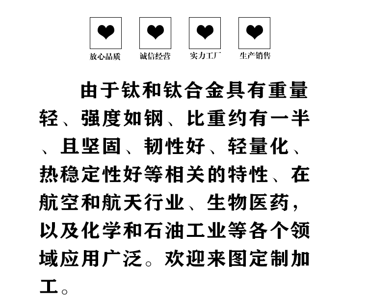 寶雞盛輝鈦業有限公司是一家主要從事鈦及鈦合金棒,鈦環,鈦法蘭及鈦合金板材的高新技術企業,公司提供鈦環,鈦合金棒批發,鈦環的生產工藝服務,以人為本,質量取勝為宗旨:18791863990,18740375975