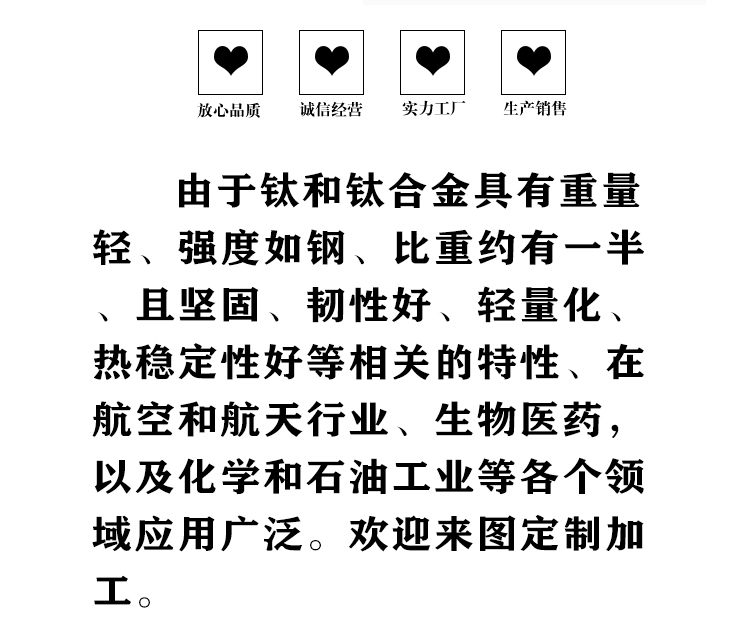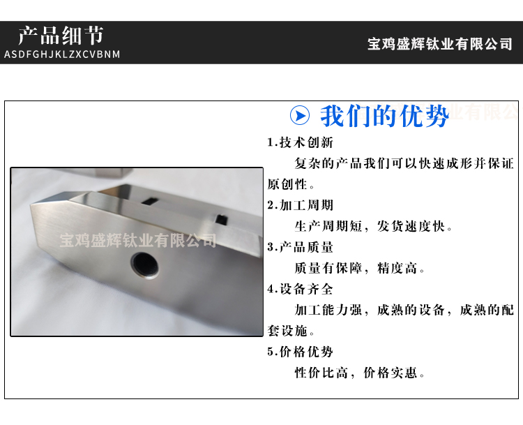 寶雞盛輝鈦業有限公司是一家主要從事鈦及鈦合金棒,鈦環,鈦法蘭及鈦合金板材的高新技術企業,公司提供鈦環,鈦合金棒批發,鈦環的生產工藝服務,以人為本,質量取勝為宗旨:18791863990,18740375975