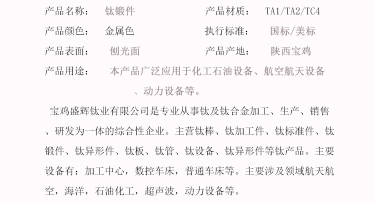 寶雞盛輝鈦業有限公司主營鈦棒,鈦加工件,鈦標準件,鈦鍛件,鈦異