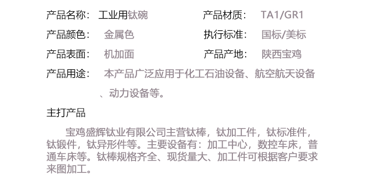 寶雞盛輝鈦業有限公司主營鈦棒,鈦加工件,鈦標準件,鈦鍛件,鈦異