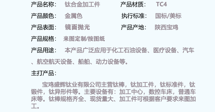 寶雞盛輝鈦業有限公司主營鈦棒,鈦加工件,鈦標準件,鈦鍛件,鈦異