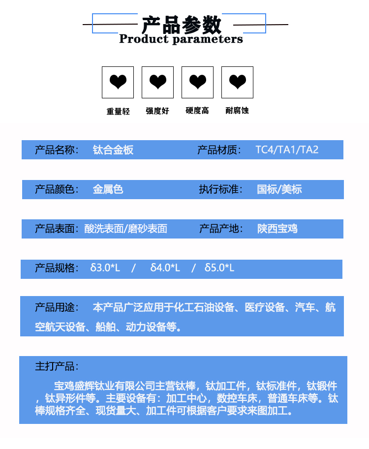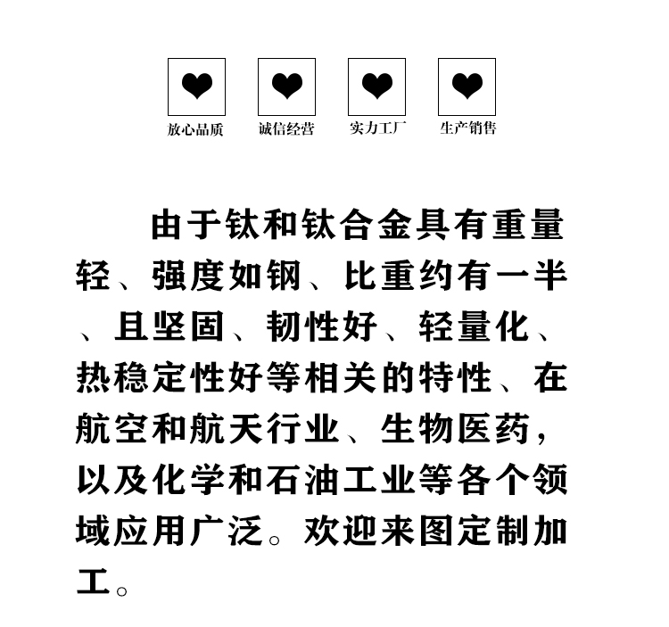 寶雞盛輝鈦業(yè)有限公司是一家主要從事鈦及鈦合金棒,鈦環(huán),鈦法蘭及鈦合金板材的高新技術(shù)企業(yè),公司提供鈦環(huán),鈦合金棒批發(fā),鈦環(huán)的生產(chǎn)工藝服務(wù),以人為本,質(zhì)量取勝為宗旨:18791863990,18740375975