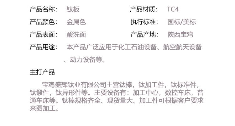 寶雞盛輝鈦業(yè)有限公司主營鈦棒,鈦加工件,鈦標(biāo)準(zhǔn)件,鈦鍛件,鈦異