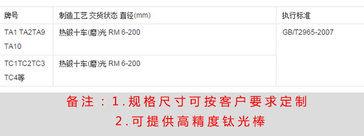 1:鈦及鈦合金棒材的化學成分應符合GB/T 3620.1,的規定,需反復驗時,化學成分的的允許偏差應符合GB/T 3620.2的規定。