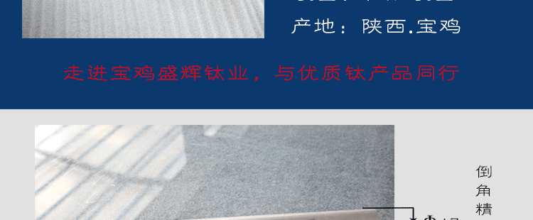 寶雞盛輝鈦業專業生產銷售各種規格的鈦棒,鈦加工件,各類鈦標準件,鈦鍛件,鈦異形件等。主要設備有:加工中心,數控車床,普通車床等。設備齊全,生產能力強,可根據客戶要求來圖加工。