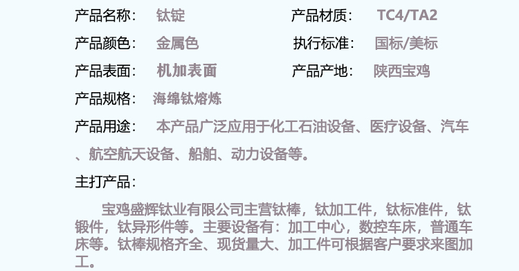 寶雞盛輝鈦業有限公司主營鈦棒,鈦加工件,鈦標準件,鈦鍛件,鈦異