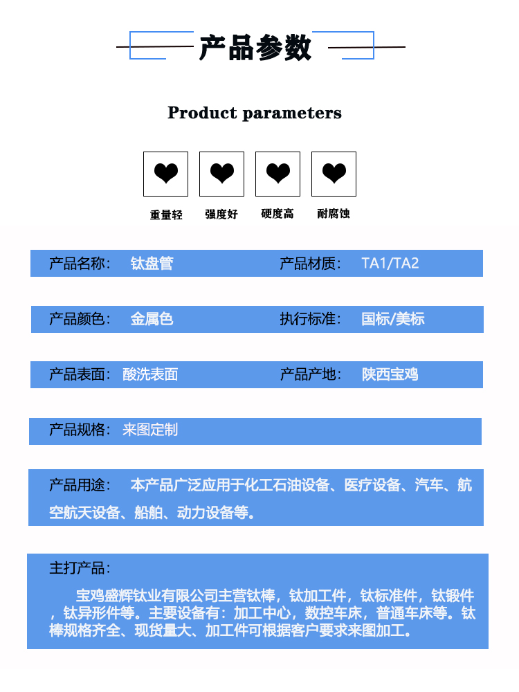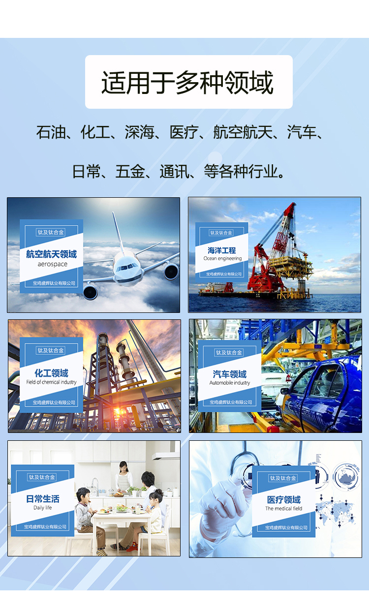 寶雞盛輝鈦業(yè)有限公司是一家主要從事鈦及鈦合金棒,鈦環(huán),鈦法蘭及鈦合金板材的高新技術企業(yè),公司提供鈦環(huán),鈦合金棒批發(fā),鈦環(huán)的生產工藝服務,以人為本,質量取勝為宗旨:18791863990,18740375975
